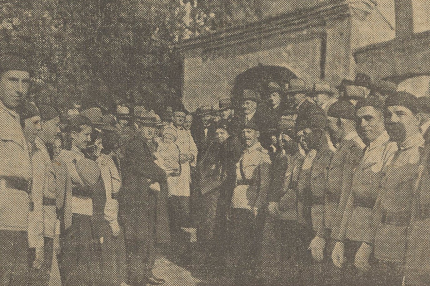 Dalej autor artykułu opisuje chrzciny i liczny w nim udział członków endecji. Zdjęcie w artykule przedstawia uczestników chrzcin przed kościołem w Sobocie. Dalszy (a może wcześniejszy?) etap tego wydarzenia odnalazłem w zdjęciach udostępnionych przez p. Leszka Rewersa.