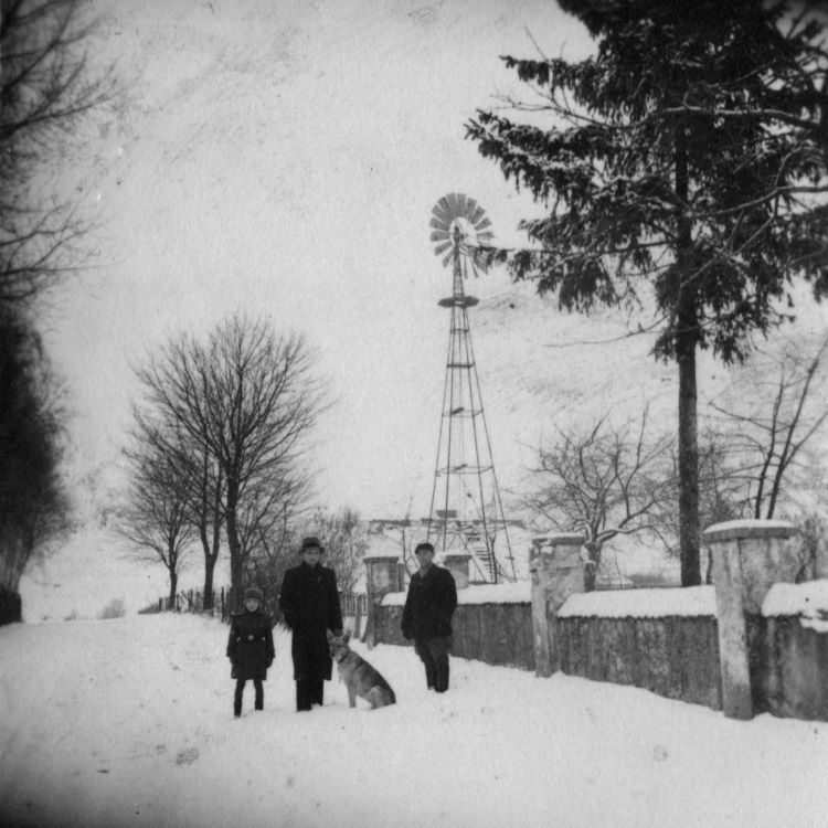 Zimowe zdjęcia to Golęczewo z lat II wojny światowej. Przed domem na Krętej 3 z psem stoją Karl, Friedrich i siostra Manfreda Gisela. Żuraw przed domem na Krętej 15. Dom narożny rodziny Johnów na Lipowej 2. Wiatrak pompy wodnej na ul. Wodnej.