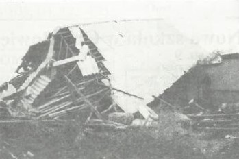 Zniszczenia stodoły w gospodarstwie Krzysztofa Piaścika – znacznik E. Źródło Gazeta Sucholeska nr 9 [10]