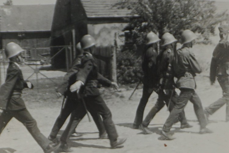Pierwsza fotografia na dole przedstawia uroczysty początek pokazów przed golęczewską szkołą i podniesienie flagi. Następnie, strażacy maszerują ulicą Dworcową, na miejsce pokazów – plac za torami, zwany „Łączką Szynalskiego” (tam gdzie jest obecnie tartak). Na fotografiach widzimy również drewnianą wieżę, która służyła również do suszenia węży strażackich po akcjach.