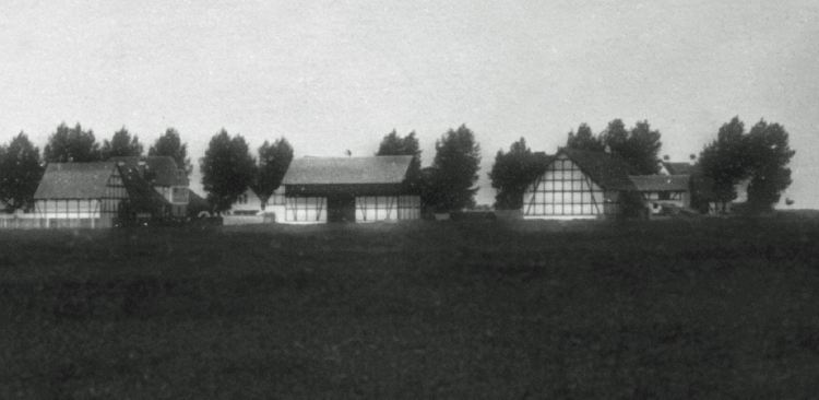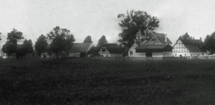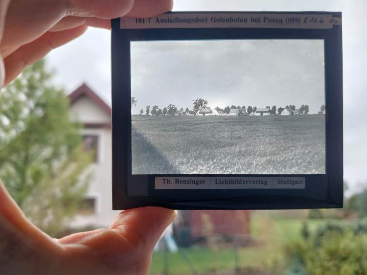 Przed nami widok wzorcowej wsi niemieckiej z czasów budowy, zapisany na niepozornej szklanej płytce. Niedawno wzniesione budynki są jeszcze niezamieszkałe, a przestrzeń dokoła zaskakuje pustką.