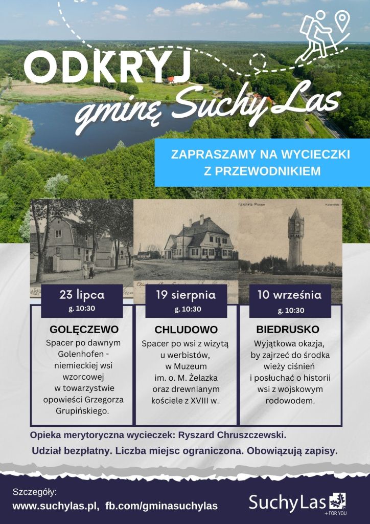 Organizatorem wakacyjnych wycieczek jest Urząd Gminy Suchy Las, a prowadzącym cały cykl – Ryszard Chruszczewski, lokalny historyk i autor licznych publikacji. Miałem przyjemność być (współ)przewodnikiem spaceru w Golęczewie.