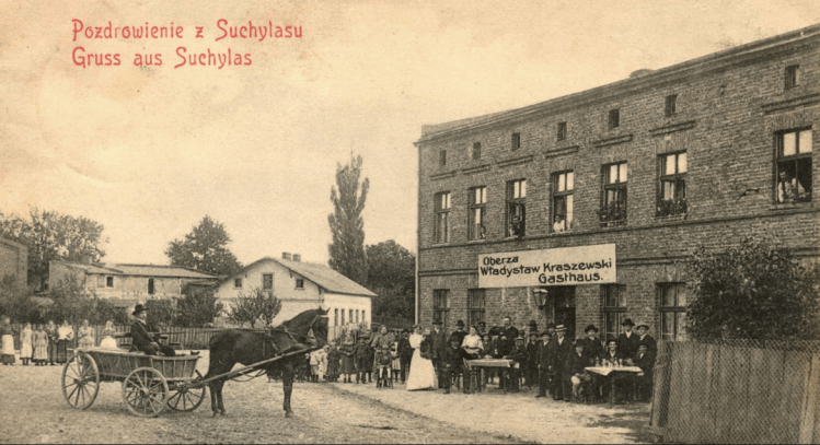 Dnia 13 listopada r. z. [roku zeszłego] zaszła w karczmie w Suchym lesie tak zacięta bójka, że jeden z biorących w niéj udział legł trupem na miejscu. W karczmę onéj zeszli się dnia rzeczonego: oskarżony Szymański wraz z robotnikami Reichertem Majem i Markusem. Po nich przybyli już nieco dobrze podchmieleni, również oskarżeni: Andrzejewski, Bocian, Hildebrand i Cegłowski. Andrzejewski, czyli właściwie Andrzéjczak pozostał w izbie gościnnéj a Bocian, Cegłowski i Hildebrandt weszli do tylnéj izby, stanowiącéj mieszkanie karczmarki, pani Jander, któréj wnet do tego stopnia dopiekli, że biedna kobiecina wpadła bez duszy do izby gościnnéj, wołając pomocy przeciw napastnikom u obecnych tamże gości.