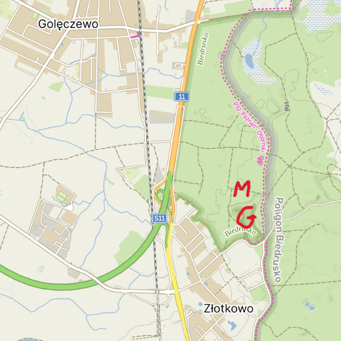 Majdany powstały przed II wojną św. nieco na północ od obecnego rezerwatu Gogulec. Dokładną lokalizację wskazuje litera M (podkład: mapy.cz; „G” to Gogulec). Chociaż były położone blisko Złotkowa, administracyjnie w dokumentach wspomniane są jako część obrębu Golęczewo.