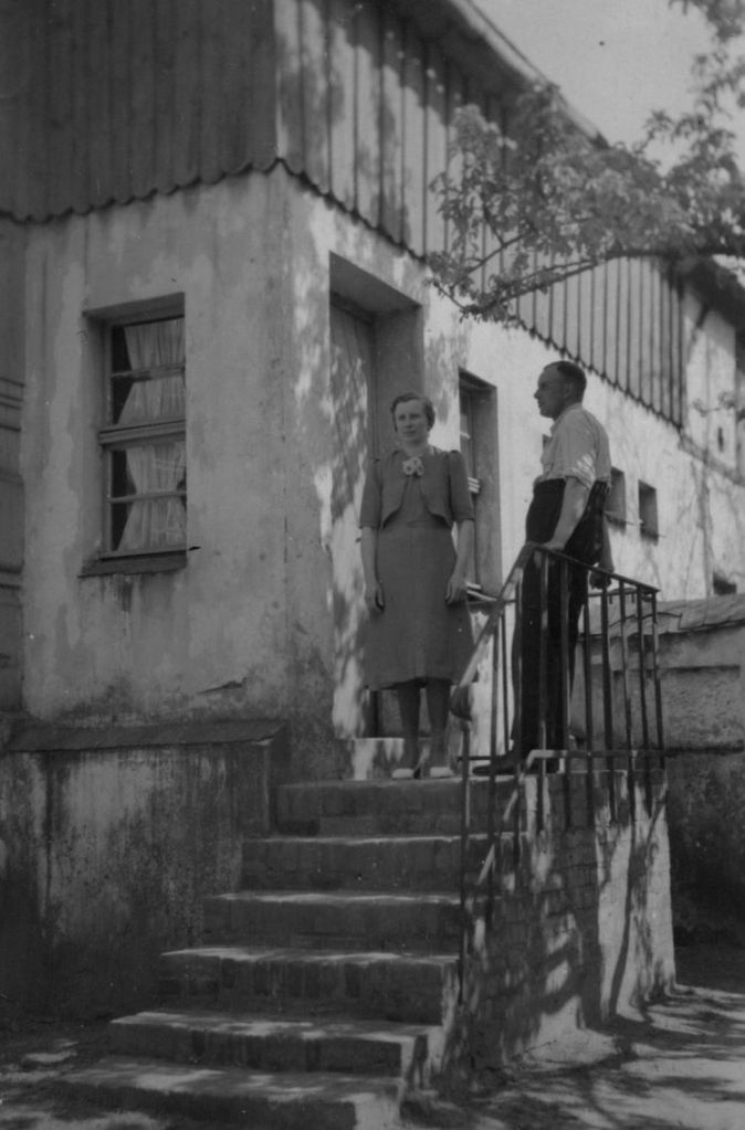 Rodzice pani Ursuli Fischer z domu Gattke, na schodach domu przy Dworcowej 57.