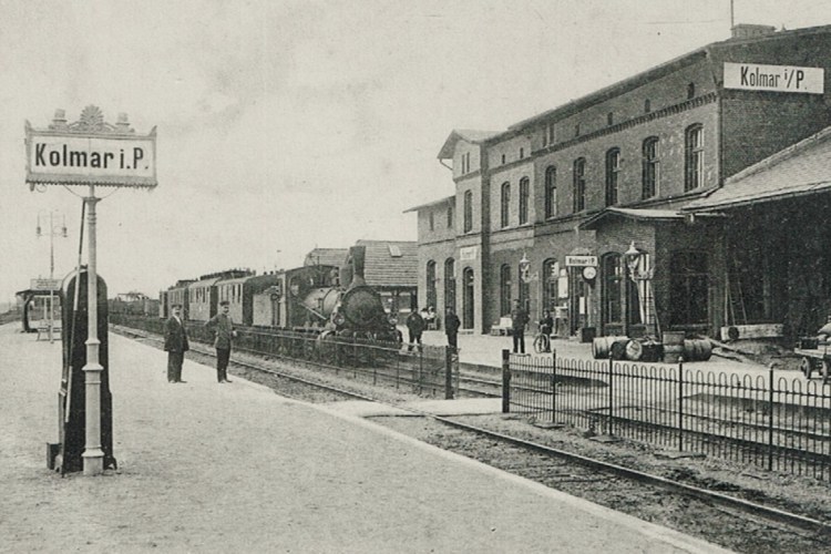 Wróćmy jednak do pociągu na golęczewskiej stacji. Lokomotywa z tendrem (wagonem na węgiel) ciągnie dwa czy trzy wagony. Bardzo podobny skład jest przedstawiony na zdjęciu dworca w Chodzieży (niem. Kolmar) – w nagłówku strony. To ta sama linia, wówczas relacji Białogard – Piła – Poznań. Pociąg zmierza w kierunku Golęczewa i Poznania.