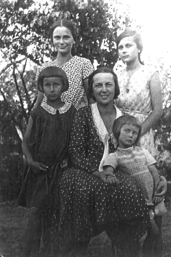 Na zdjęciu Jadwiga Korzeniewska z domu Alkiewicz, żona Mieczysława Korzeniewskiego, w otoczeniu dzieci. Po lewej, najstarsza i najwyższa to Krystyna Korzeniewska ur. 1914, obok z prawej Aleksandra Korzeniewska ur. 1917. Na dole z lewej, obok Jadwigi Anna Korzeniewska ur. 1922, zaś po prawej najmłodszy Jerzy Korzeniewski ur. 1927. Zdjęcie wykonano ok. 1930/1931 roku, w ogrodzie domu w Golęczewie.