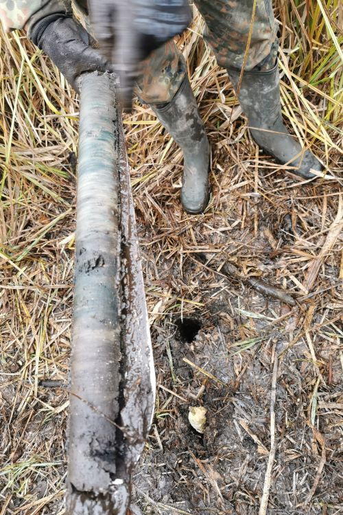 Aby rozwiać nasze wspomniane wyżej wątpliwości co do oryginalności tego stanowiska, jesienią 2018 roku przystąpiłam wraz z Jakubem Niebieszczańskim do serii badań weryfikujących ich prawdziwość. W pierwszej kolejności sięgnęliśmy po metody nieinwazyjne, czyli nienaruszające struktur ukrytych pod ziemią, w których Jakub jest uznanym specjalistą. Wykorzystaliśmy metodę magnetometryczną do weryfikacji widocznych nasypów. Ujawniła ona szereg tzw. „anomalii”, które z użyciem odwiertów geologicznych potwierdziły, że pod nasypami mamy do czynienia z konstrukcją kamienną, która często jest spotykana w tych pradziejowych obiektach.