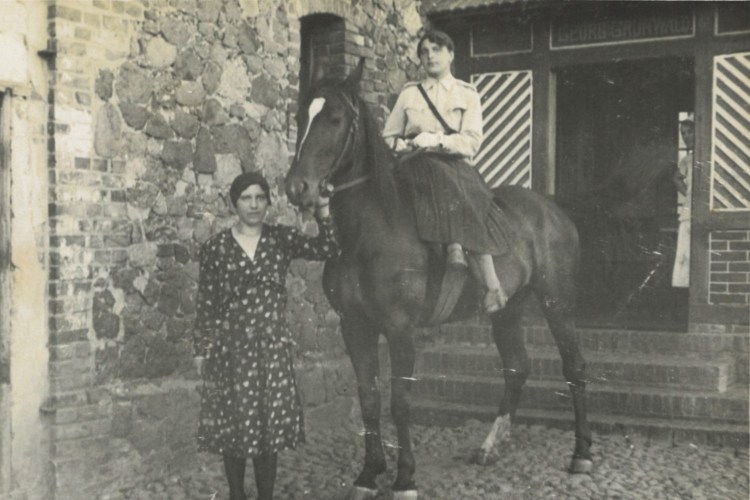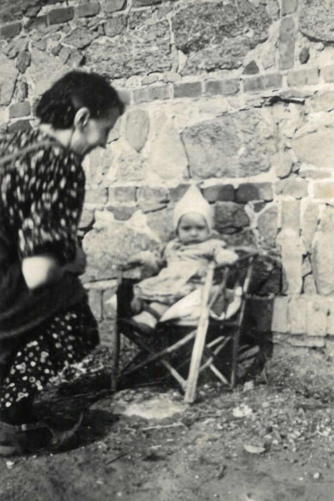 1944, Rozalia z córką Stanisławą (Stenią) pod murem domu na Tysiąclecia 13