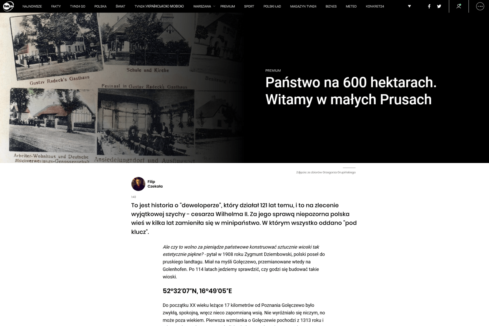 Kilka dni temu w Golęczewie miałem przyjemność oprowadzać po wsi reportażystę magazynu TVN24 – Filipa Czekałę, autora książek o Poznaniu, m.in. „Historie warte Poznania”. Efektem tej wizyty jest obszerny artykuł, który od dziś jest dostępny online. Reportaż „Państwo na 600 hektarach. Witamy w małych Prusach” w ciekawy sposób opisuje historię powstania modelowej wsi niemieckiej wCzytaj dalej „O historii Golęczewa w magazynie TVN24 online”