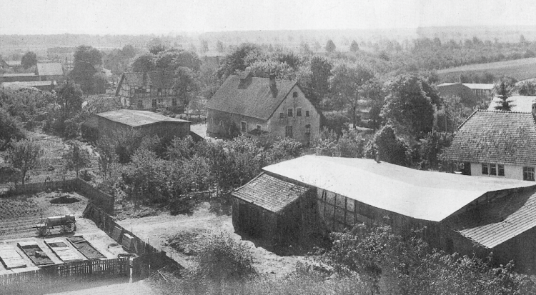Nieistniejącą już stodołę gospodarstwa możemy zobaczyć na pierwszym planie obok (zdjęcie ze zbiorów Stowarzyszenia Golęczewian, wykonane w latach 50-tych z pompy wodnej).