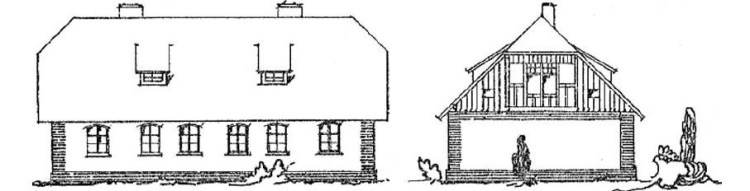 Dom od początku funkcjonował jako dwurodzinny i tak jest do dziś. Zarówno dom mieszkalny jak i obora były podzielone w poprzek na dwie własności. Budynek był jednym z kilku w Golenhofen, przeznaczonych nie dla samodzielnych gospodarzy, a dla robotników rolnych. Rysunki poniżej pochodzą z katalogu projektowego Paula Fischera.