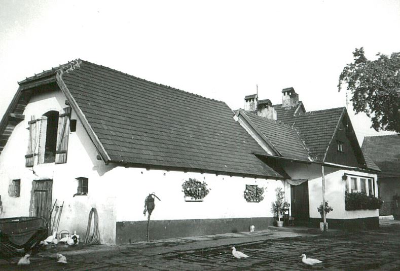 Oto fotografia tego domu z czasów Golenhofen. Według danych ze spisu osadników, dom zasiedliła rodzina Christiana Kantza (Kautza), pochodząca z Helmlingen w Badenii. W 1939 r. dom objął zięć pierwszego osadnika – Wilhelm Berg. Gospodarstwo pozostało w rękach niemieckich do 1945 roku.