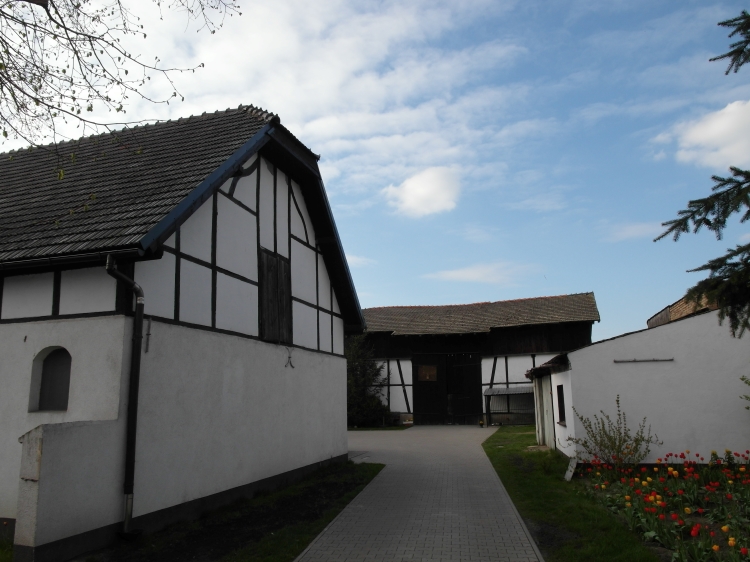 Przylegający do gospody dom z dawnym numerem 42 zwraca uwagę pięknie zachowaną szachulcową elewacją.