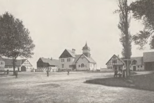 Rok 1903, może 1904? Centralny plac niemieckiej wsi wzorcowej niemal gotowy. Zamieszczona w propagandowym wydawnictwie fotografia daje pojęcie o rozmachu inwestycji Komisji Osadniczej w Golęczewie. „Zwanzig Jahre deutscher Kulturarbeit: 1886-1906 : Tätigkeit und Aufgabenneupreußischer Kolonisation in Westpreußen und Posen” to wydane w 1907 roku dzieło promujące osiągnięcia niemieckiej kolonizacji na…