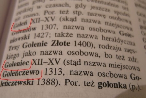 Galerię naszych golęczewskich „sław” otwiera Goleniec – hipotetyczny założyciel czy pierwszy właściciel wsi. Źródła nie wspominają takiej postaci, ale specjaliści zajmujący się pochodzeniem nazw miejscowych domyślają się jego istnienia. Najstarsza zapisana nazwa wsi, z 1313 roku, brzmiała najprawdopodobniej Goleńczowo lub Goleńczewo. Taka zaś nazwa oznaczałaby „miejsce czy pole człowieka, którego zwą Goleniec”. Zaś jego czas życia należałoby umieścić gdzieś pomiędzy XI a XIII wiekiem.