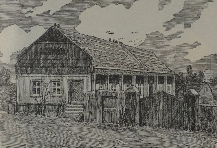 Ten fragment pocztówki z ok. 1913 roku przedstawia pierwotny stan budynku z niewielkimi podcieniami od południowej strony.