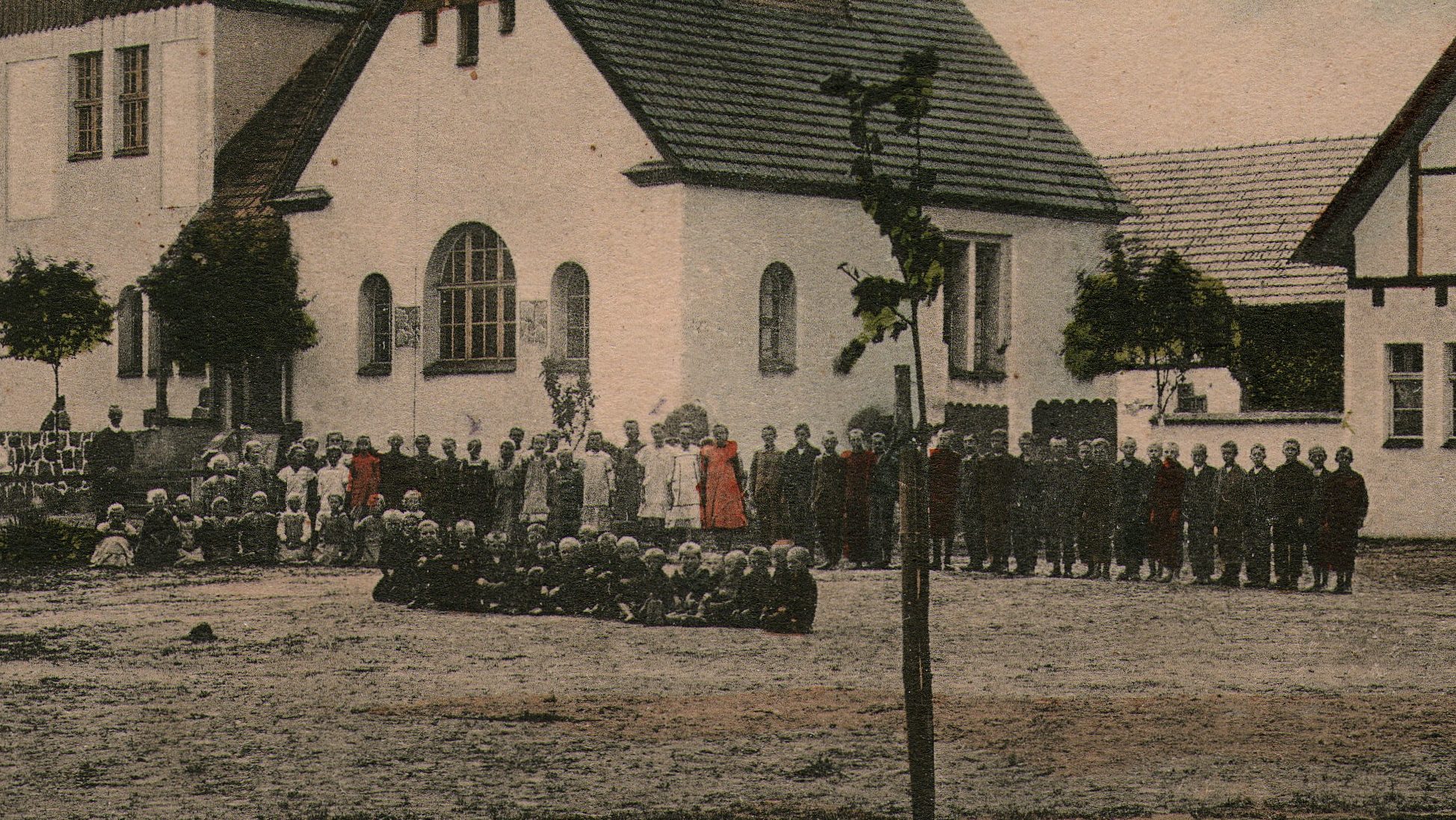 Najstarsze zdjęcie pochodzi z ok. 1906 roku. Pan z lewej w siwej czuprynie to najprawdopodobniej Richard Janetzky, nauczyciel.